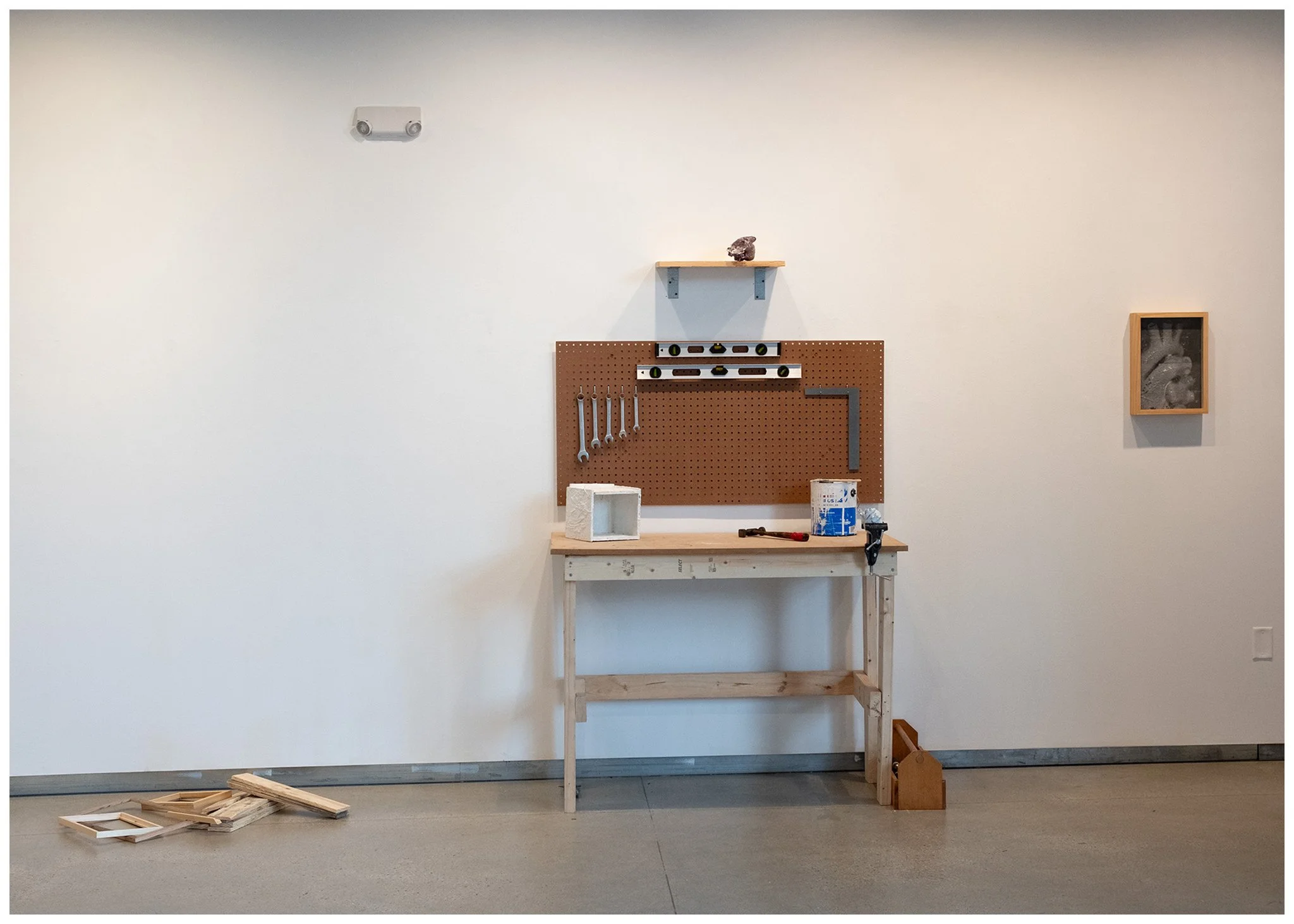 In the utilitarian workshop, a rugged workbench’s paint spatters and burn marks reveals it has been used for its purpose. A dingy hammer duct taped to its handle exposes an intimacy with its user. The hammer is known. There is warmth to a workshop with bolts and screws littered atop multiple surfaces. It feels genuine, it feels alive, and there is evidence that something is being worked on. All these aspects I feel apply to humans: flaws that illuminate a genuine individual, imperfections which show a life lived, and missteps that we moving forward from in an attempt to grow.